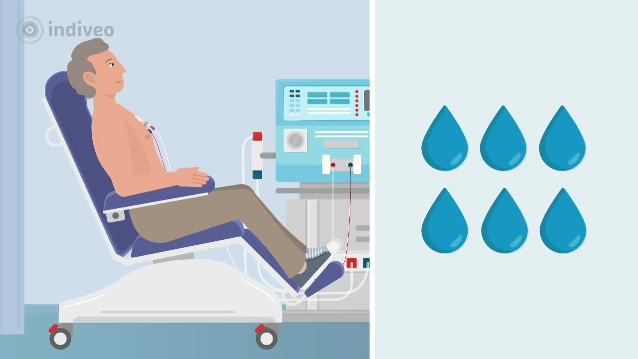 In deze Divi wordt aan de patiënt uitgelegd wat het streefgewicht bij hemodialyse is en waarom dit belangrijk is. De patiënt leert dat tijdens hemodialyse overtollig vocht uit het bloed wordt gehaald, vooral wanneer de nieren weinig of geen urine meer maken. Het streefgewicht is het gewicht zonder extra vocht en helpt om klachten en vochtophoping te voorkomen. De patiënt wordt geïnformeerd door middel van animatie, illustratie en tekst.