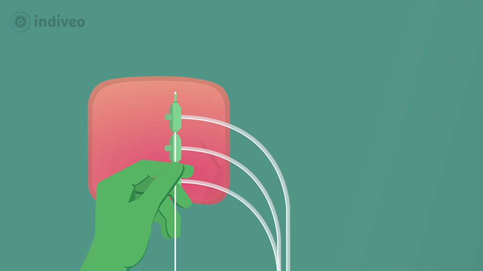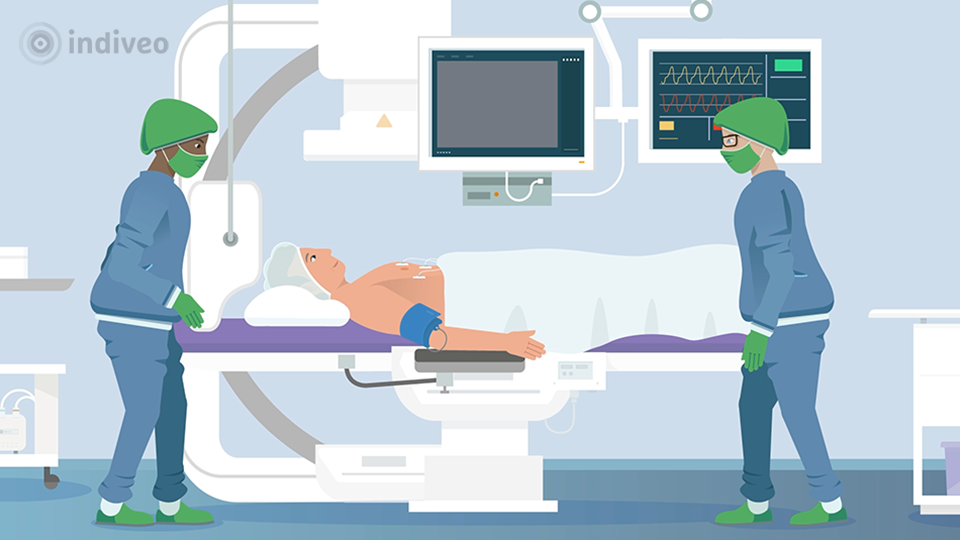 The patient has atrial fibrillation. This means that the heart beats irregularly and usually too fast. With ablation treatment, the heart rhythm can return to normal. The doctor inserts a thin tube into the heart and makes a small scar around the pulmonary veins. This blocks the wrong stimuli, reducing the chances of getting atrial fibrillation. The patient is informed by text, illustrations and animation.